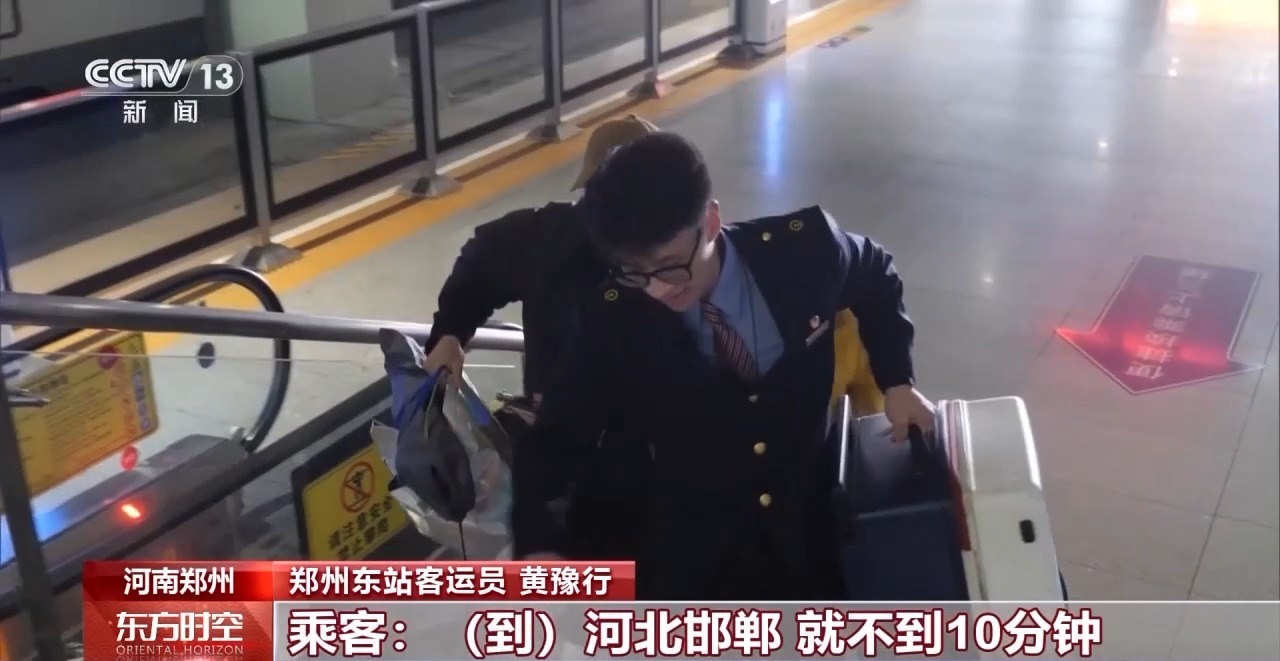 郑州东站客运员 黄豫行:根本停不下来,每天各种旅客需要帮助的太多了,基本上就是不间断不停。来来回回,站台、检票口、候车厅这样跑来跑去。