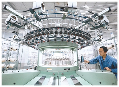 山东青岛,纺织服装企业的技术工人利用数字化设备生产坯布。梁孝鹏摄(人民视觉)