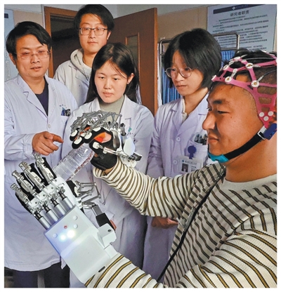 河北秦皇岛,脑机接口科研团队进行脑控机械手系统调试。曹建雄摄(人民视觉)